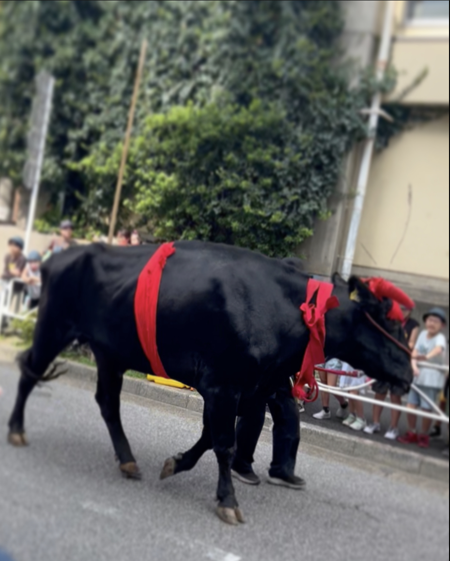 牛が行列の中歩いていました!