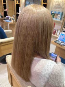 ブリーチしてるとは思えないほど、しなやかで自然な手触りになるよう、しっかりトリートメントも入れています。