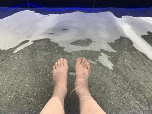 今回は足湯につかりながら