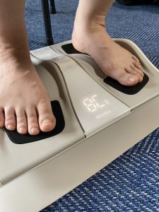 今日は座りながら勝手に脚の筋肉を鍛えてくれる