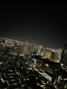 窓からみる夜景がとてもきれいでみんなで夜景の写真も撮りました。