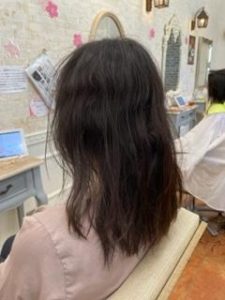 今回のモデル様は毛が細くてちょっと硬くてクセ毛のお客様です。