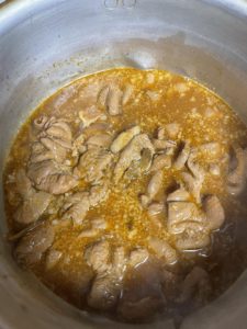 いつもはモツと大根、ごぼう、こんにゃくでシンプルな具にして作る