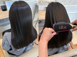 ストレート施術の際に水蒸気コントロールしてくれるので、、熱ムラを防ぎ、ツルツルなストレートヘアーへ導いてくれます。