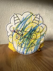 娘も保育園で節分会をやり、鬼のお面を被り鬼に豆をぶつけて鬼退治して来たそうです!