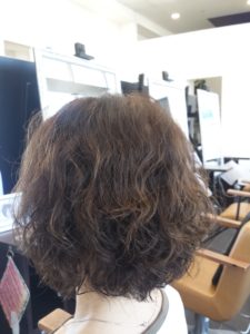 パーマでふわふわカール。ボリュームもアップして、軽やかな仕上がりに。
