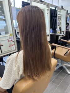 - カラーリングのお色はグレー系で赤み除去していきます!!一緒にトリートメントでツルツルにしていきたいと思います。