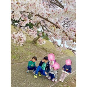 入学式の前に桜が満開のとき、近所のお友達と一緒に公園で遊んで写真を沢山撮りました。
