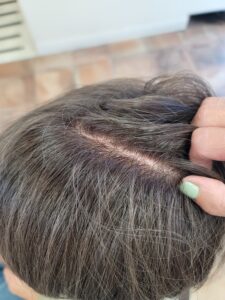 は頭全体に均一に白髪の代わりになるような筋を入れていきます