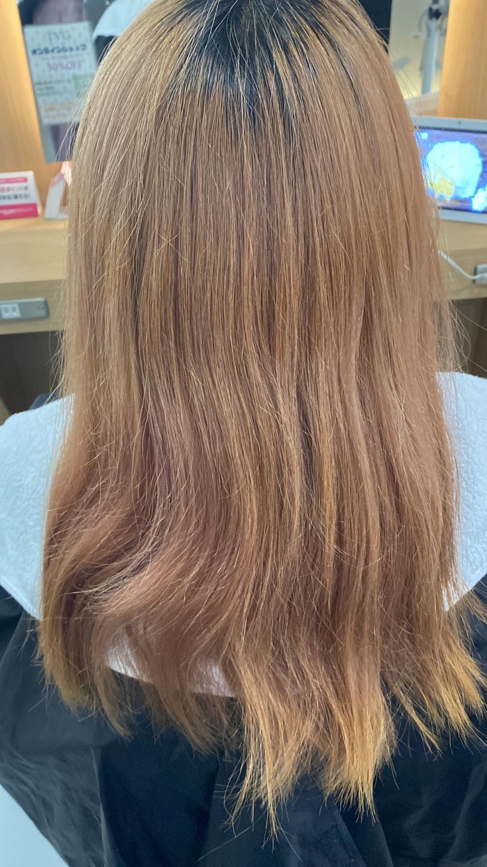 ブリーチ無しだとブラウンに柔らかいピンクの混ざった